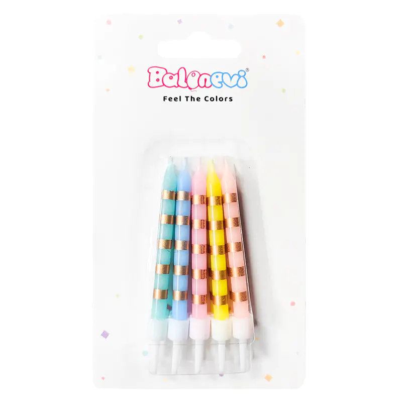 Gold Şeritli Makaron Karışık Mum 10'lu